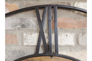 Built in an industrial style, the clock face is constructed from a blend of wood and metal, with roman numerals at each quarter of the hour.
