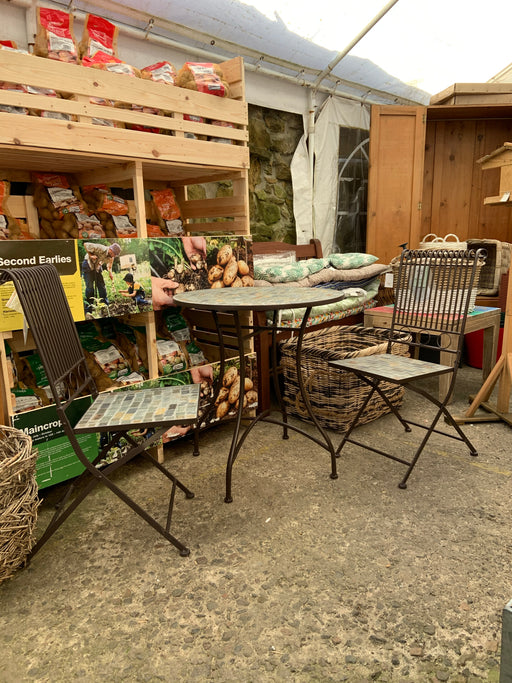 HOME HARDWARE LTDSolid garden bistro set This garden bistro set arrives complete with 2 chairs and a large round table. Each featuring a unique stone mosaic top, wi...