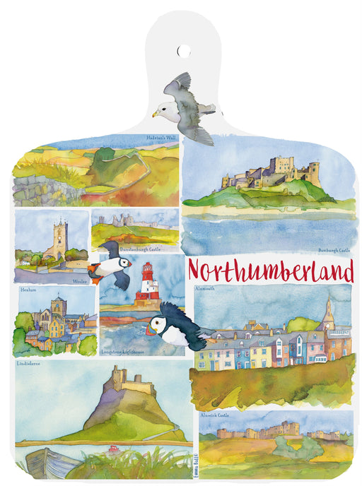 EMMA BALLHandy mini chopping board, featuring a range of castles and scenery from across Nortumberland.