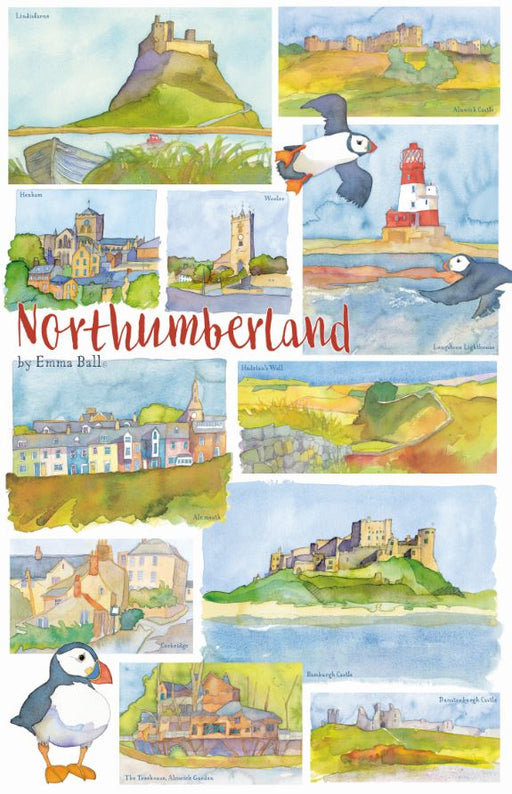 EMMA BALLBright & beautiful tea towel, featuring designs of scenes from across our amazing county. Designed by Emma Ball