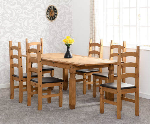 SECONIQUE PLC LTDCorona Distressed Waxed Pine Extending Dining Set (6 chairs) Complete your dining look with this extending dining table together with 6 chairs. An ...