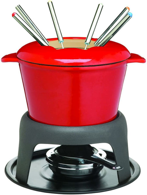 The Ultimate Dinner Party Fondue Set This red fondue set is perfect for cheese, chocolate and even meat. Made from sturdy cast iron, the set comes...