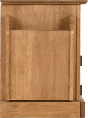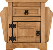 Simple pine magazine table, with 2 side slots for magazines & papers. Featuring a drawer and cupboard, this table looks great alone, or with other items from the Corona furniture range.