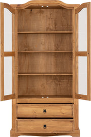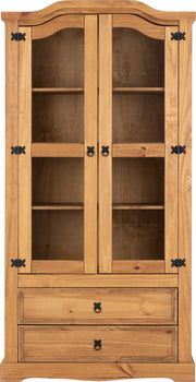 Stylish display unit with plenty of storage. This large display cabinet features two glass doors, allowing you to show off your ornaments without them collecting dirt and dust. The unit is an item from the popular Corona furniture range, meaning you can match it with other items should you wish.