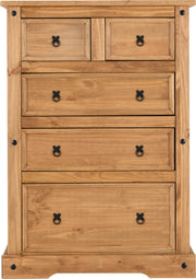 Corona Distressed Waxed Pine 3+2 Drawer Chest