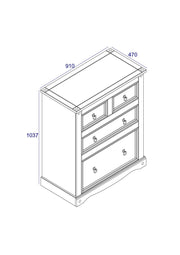 This 4 drawer (2 + 2) chest is the perfect chest of drawers for clothes, featuring 2 smaller drawers at the top, and a large bottom drawer. Built from sturdy pine.