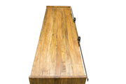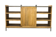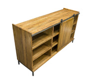 Featuring 3 rows of 3 shelves and a sliding door on castors, this beautiful mango wood sideboard makes a great addition to any living space. Merging style with practicality, there is plenty of space throughout the unit, and the metal accenting really sets off the contemporary industrial style.