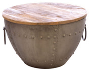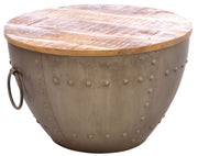 Mango wood and metal melded to give a warm industrial style, the contrast of the metal storage base and the solid wood lift off lid make a stylish storage table or coffee table. A fanatastic and unique design for many different styles of room.