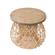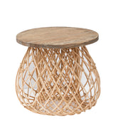 Highly contemporary, this natural-inspired side table has a large, stable base and a solid wood top.