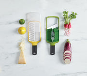 Slicing fruit & vegetables has never been easier than with this Joseph Joseph mandoline. With 3 styles of grip - pinch (for smaller items), centre (for round slices), and flat (for longer slices - the handle is non-slip, and the protective guard keeps your fingers away from the blade.